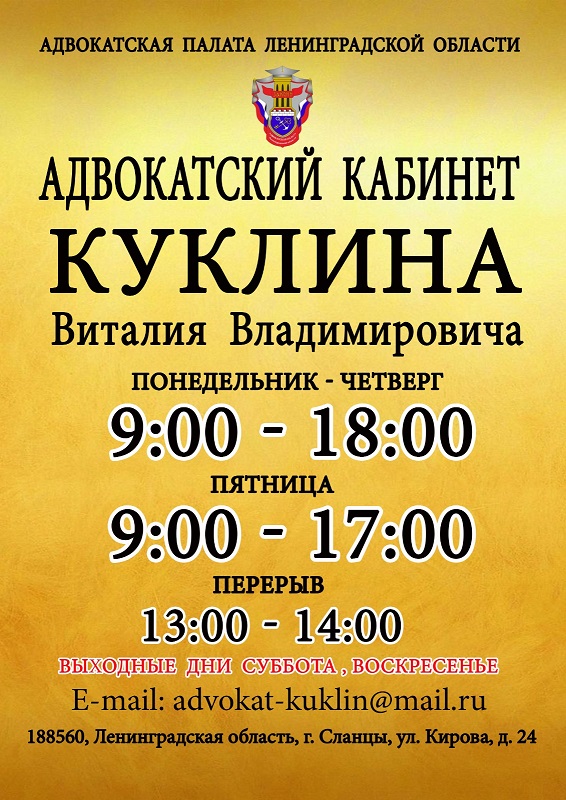 Если, не дай Бог, человек в Сланцах попал в беду и ему требуется юридическая помощь, вы всегда сможете выбрать подходящего адвоката на нашем сайте.
